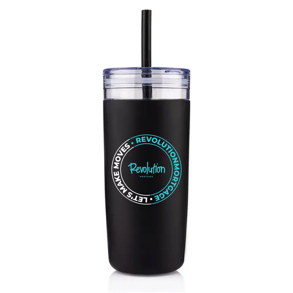 sku: TM198LMM32 oz acrylic tumbler with silicone sleeve imprinted with the Revolution Mortgage Duo Seal. Comes with matching silicone straw & cleaning brush for straw.